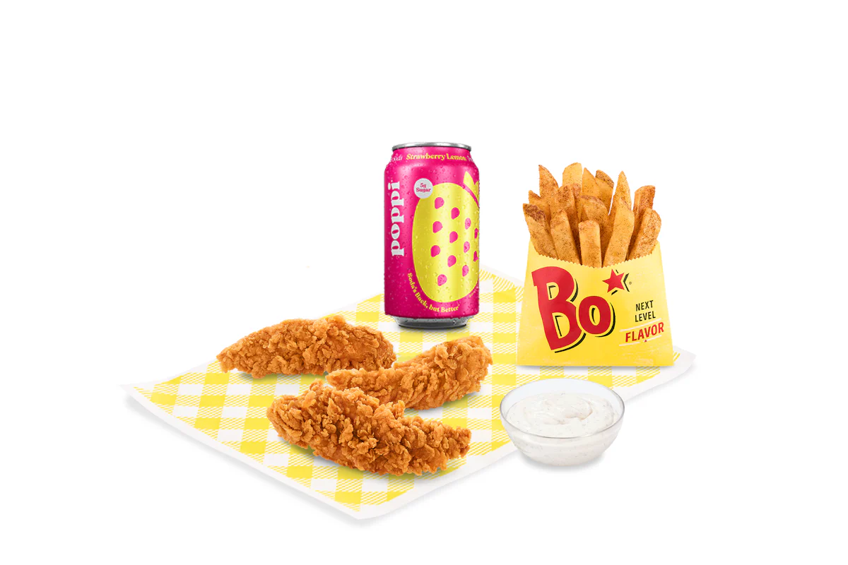 Chicken breast tenderloins marinated with a bold blend of seasonings and served with a made-from-scratch biscuit, a fixin’, and a medium drink.