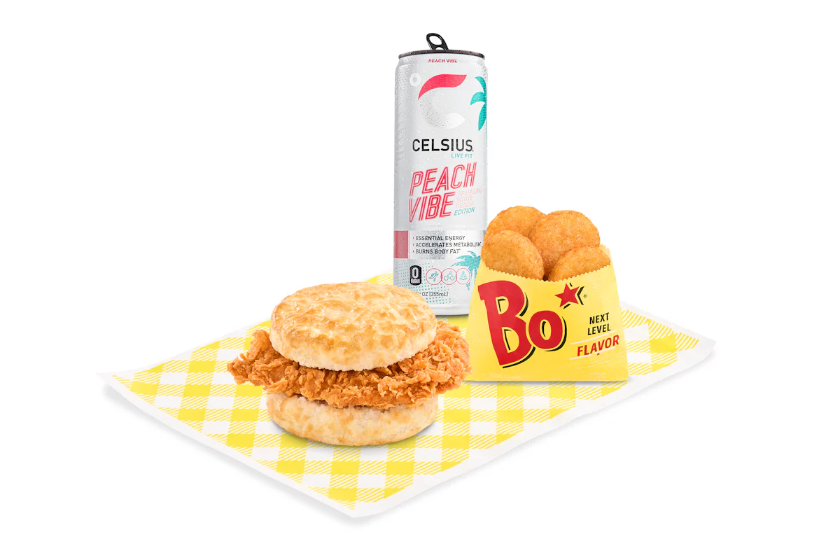 A uniquely seasoned chicken breast filet on a made-from-scratch buttermilk biscuit, served with Bo-Tato Rounds®, coffee or medium drink.