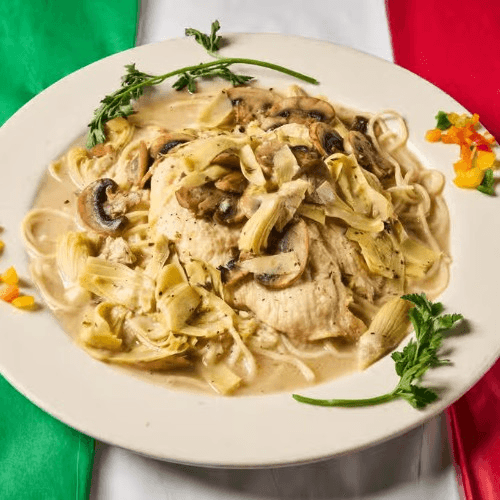 Mushrooms, sun-dried tomatoes, alfredo sauce